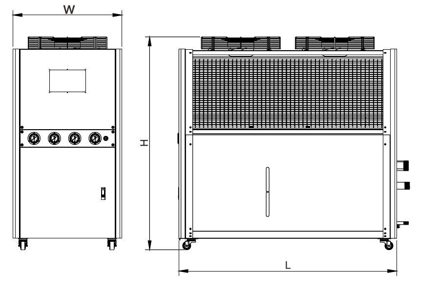 Air Chillers adopt fin condensers (without need of cooling water) with the features of rapid heat transmission and excellent heat dispersion. This series can be afforded cooling ranges from 5~35℃, even lower to 3℃ (temperature controlled accuracy at ±1℃). The compressors' power range from 3HP~50HP and cooling capacities range from 7800~ 128570 Kcal/hr.